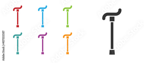 Black Walking stick cane icon isolated on white background. Set icons colorful. Vector.