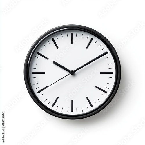 Black Wall Clock with Minimalist Design and Simple Hour and Minute Hands on White Background