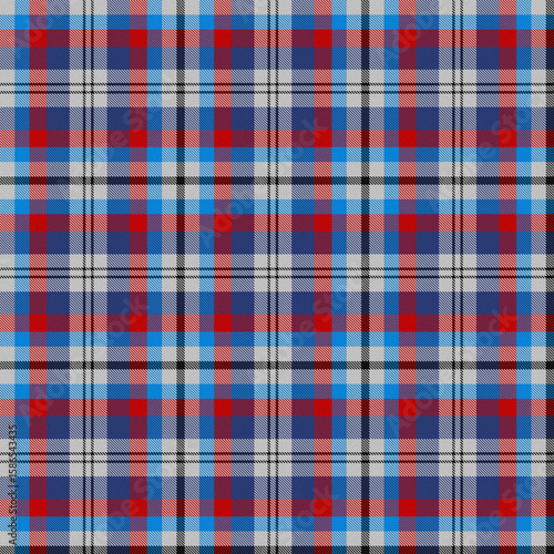 Black, White, Bright Light Blue, Bright Red, Blue Tartan Weave Pattern - Tile