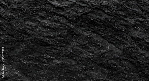 Black white dark gray stone rock granite background. Mountain surface texture. Close-up. For design