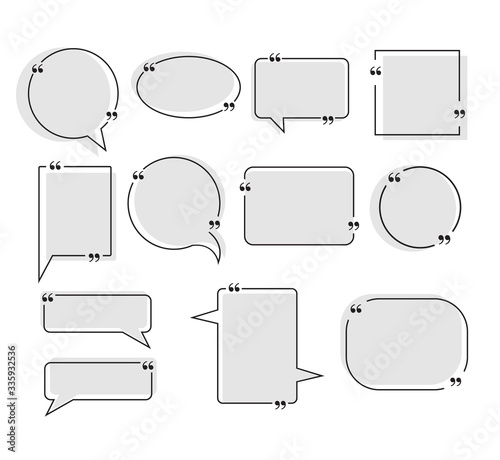 Black white quote box frame isolated set collection. Vector flat graphic design cartoon illustration