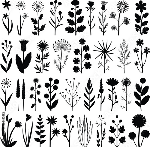 Black wildflower and herb silhouettes – botanical vector set for digital crafts, printables, stickers, cutting machines, and nature-inspired designs