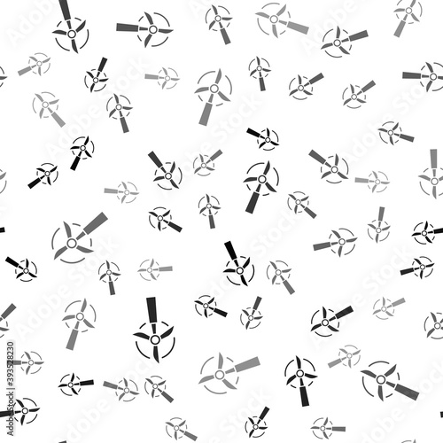 Black Wind turbine icon isolated seamless pattern on white background. Wind generator sign. Windmill for electric power production. Vector.
