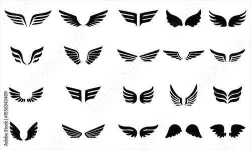 Black Wing Silhouette Icon Set – Collection of Abstract Bird Wing Vector Designs on White Background