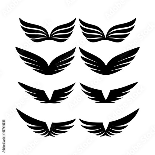 Black wings icon set. Wings icons. Collection badges of wings. Vector illustration.Set of wings icons. Collection wings badges. Vector illustration.Silhouette Vector Black. with white background