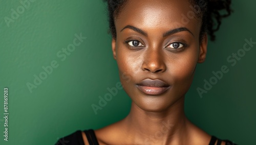 Black woman, beauty and skincare in salon, face portrait for natural afro, facial or hair care cosmetics. Healthy, beautiful model with curly hair skin shine studio isolated background. Copy space.