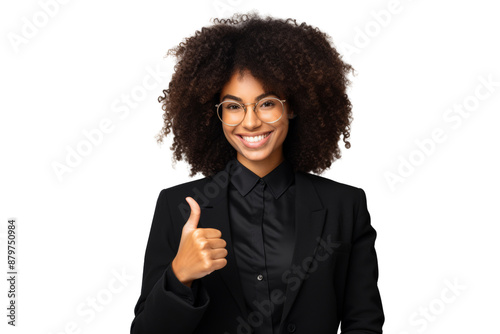 Black woman in a good mood, gesturing thumbs up Isolated on white background