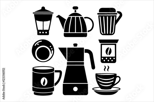 "Black-and-White Coffee and Tea Vector Illustration Collection"