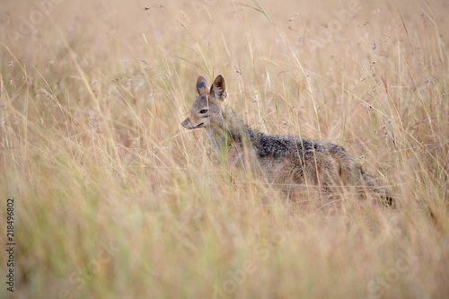 Black-backed jackal (Canis mesomelas) hunting in long grass in Masai Mara, Kenya