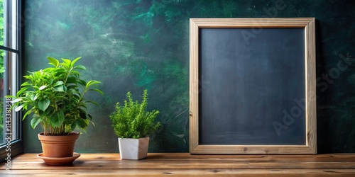 Blackboard Window Still Life: Potted Plant, Dark Academia Aesthetic Photography