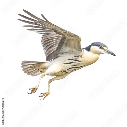 Black-crowned Night Heron flying - Water birds eat fish on transparent background
