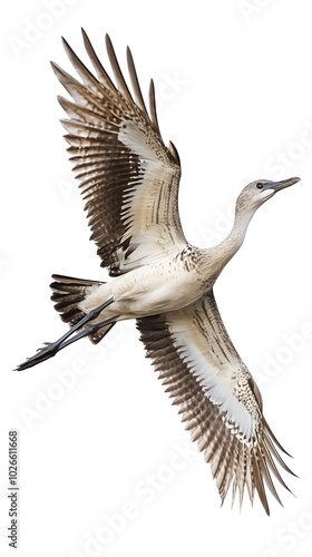 Black-legged Seriema Bird Flying on White Background, Realistic Photo, Pattern Background, Wallpaper, Cover and Screen for Smartphone, PC, Laptop, 16:9 and 9:16 Format