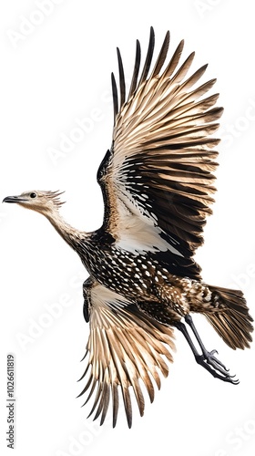 Black-legged Seriema Bird Flying on White Background, Realistic Photo, Pattern Background, Wallpaper, Cover and Screen for Smartphone, PC, Laptop, 16:9 and 9:16 Format