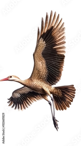 Black-legged Seriema Bird Flying on White Background, Realistic Photo, Pattern Background, Wallpaper, Cover and Screen for Smartphone, PC, Laptop, 16:9 and 9:16 Format