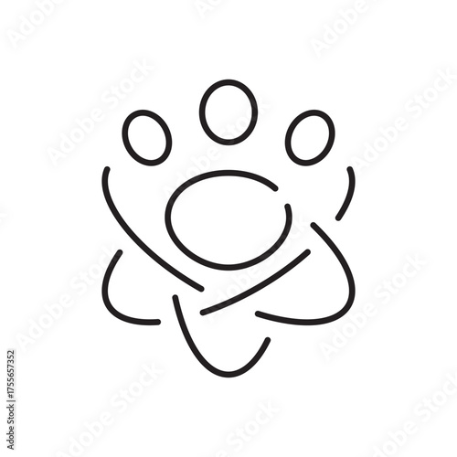 Blackline design of three circles above a center ellipse with orbital lines
