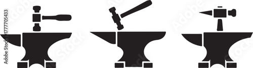 Blacksmith Anvil Hammer Silhouette Set Smithy Tool Forging Workshop Equipment
