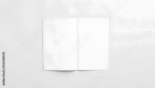 Blank A4 photorealistic brochure mockup on light grey background, enhance. White tone