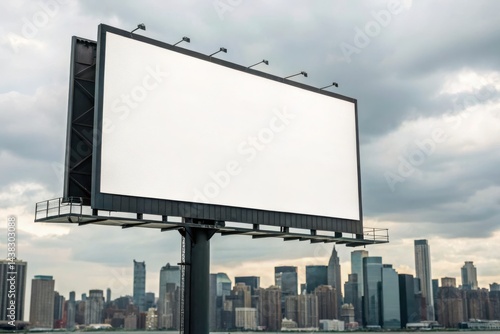 Blank advertisement billboard in urban cityscape with cloudy sky, ideal for marketing visual