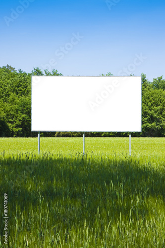 Blank advertising billboard in a green field - image with copy space