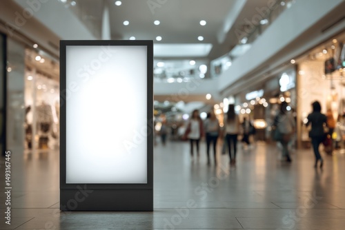 Blank Advertising Billboard in Shopping Mall, Ideal for Retail Marketing and Brand Awareness Campaigns, with Shoppers in Background : Generative AI