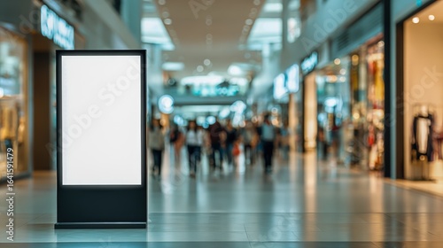 Blank Advertising Billboard Mockup in Modern Shopping Mall with Blurred People Background, Ideal for Marketing Campaigns