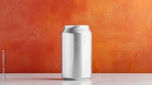 Blank Aluminum Beverage Can Mockup Against Orange Background