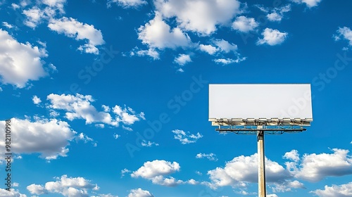 Blank billboard against blue sky. A blank billboard with a blue sky and clouds provides copy space for advertising and marketing