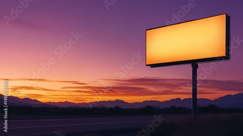 Blank Billboard at Sunset with Mountain Range