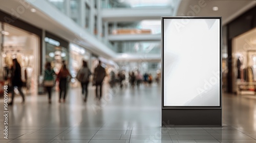 Blank Billboard in Shopping Mall with Shoppers Walking By, Mockup Template for Advertising and Promotion