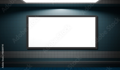 blank billboard located in subway for advertising mockup concept. 3d illustration