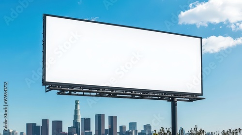 Blank Billboard Mockup Against City Skyline and Blue Sky