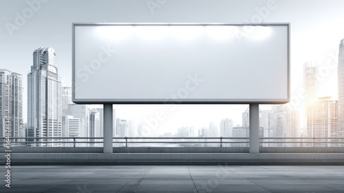 Blank Billboard Mockup Against Cityscape Background, Ideal for Advertising Campaigns and Marketing Presentations