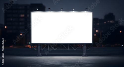 Blank billboard mockup at night in the city, perfect for advertising your brand and showcasing your message to a large audience.