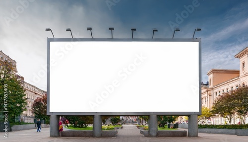 Blank billboard mockup on urban city area. Large empty white banner