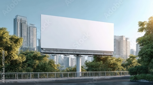 Blank Billboard Mockup with Cityscape Background for Advertising and Marketing Campaigns in Urban Area