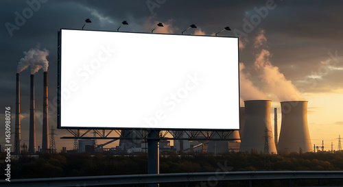Blank Billboard on Overpass, Industrial Energy Backdrop