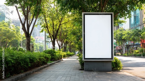 Blank Billboard on Urban Street with Green Trees Mockup for Advertising or Promotional Design