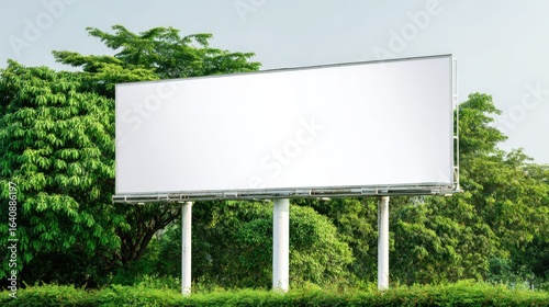 Blank Billboard Ready for Advertising Surrounded by Green Trees, Ideal for Mockup Presentations and Marketing Campaigns