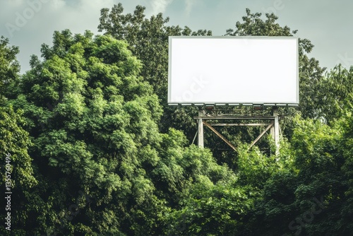 Blank Billboard Surrounded by Lush Greenery: A Nature and Advertising Contrast
