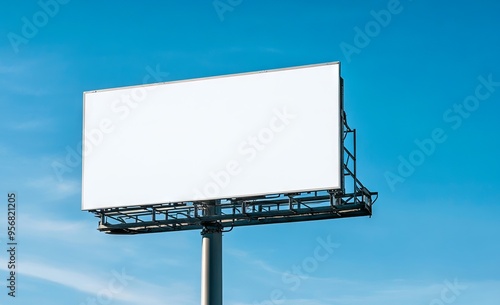 Blank Billboard with Clear Blue Sky Background. AI generated illustration