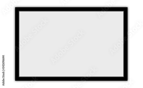 Blank black empty rectangle frame, banner illustration on white wall.