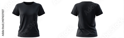 Blank black women's t-shirt, front and back view (1)