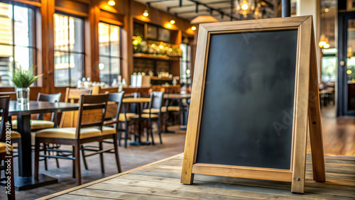 Blank blackboard restaurant sign with menu items written in chalk near the entrance , blackboard, restaurant, shop, sign, menu