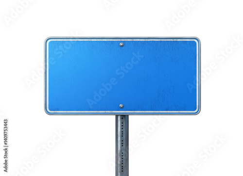 Blank blue sign stands alone urban digital clear environment straight view on transparent background