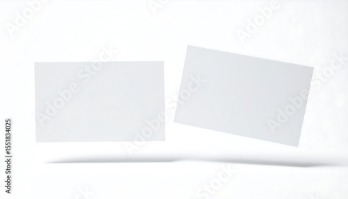 Blank business cards floating on white.