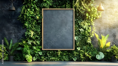 Blank Canvas in Lush Green Vertical Garden Setting.