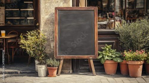Blank Chalkboard Sign Outside a Parisian Cafe