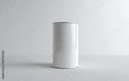 Blank cylindrical container placed on a minimalistic light gray background with soft shadows