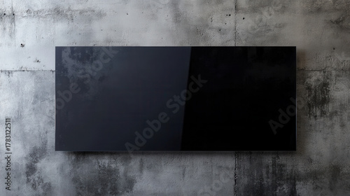 Blank dark slate blackboard or sign on textured gray concrete wall background