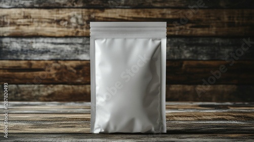 Blank Foil Pouch Mockup on Wooden Background
